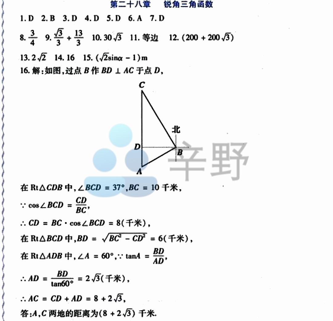 | 数学 | 一轮总复习93-96页: 第二十八章 锐角三角函数 第二十九章 投影与视图 |