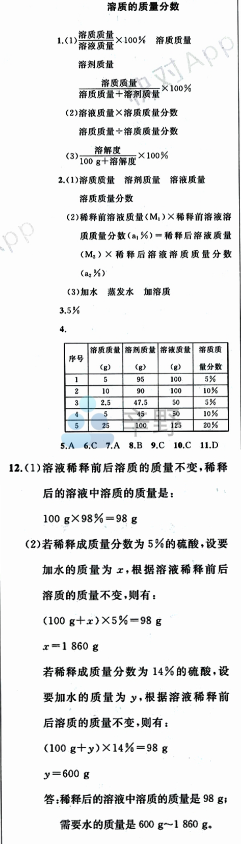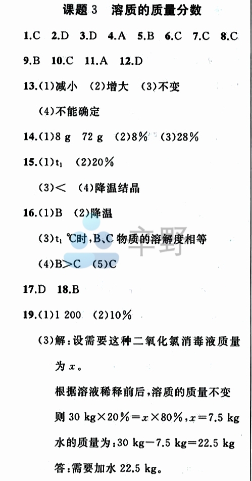 | 化学 | 试题优化35-37页: 课题3 溶质的质量分数 随堂评估143-145页: 溶质的质量分数 |