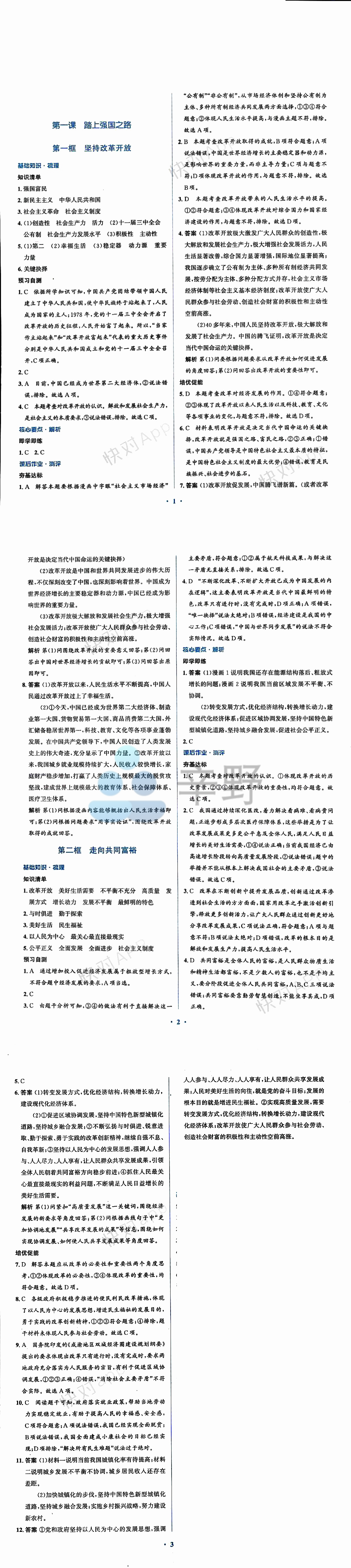 | 道法 | 同步解析与测评1-12页: 第一课 踏上强国之路 |