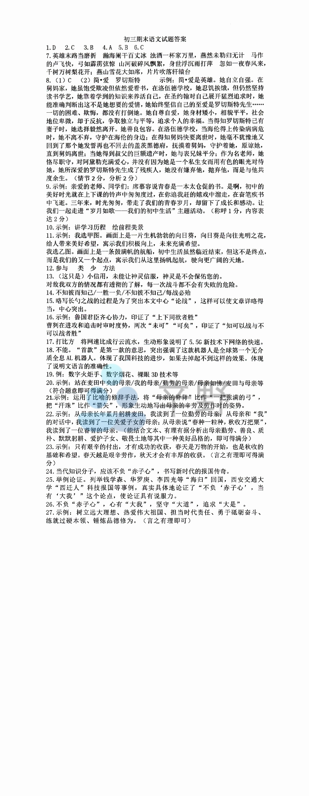 | 语文 | 卷子1套: 初三教学质量监测语文试卷 |
