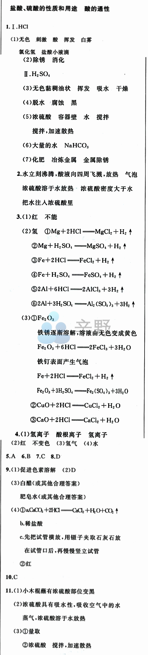 | 化学 | 随堂评估154-160页: 盐酸、硫酸的性质和用途 酸的通性 氢氧化钠、氢氧化钙的性质和用途 碱的通性 |