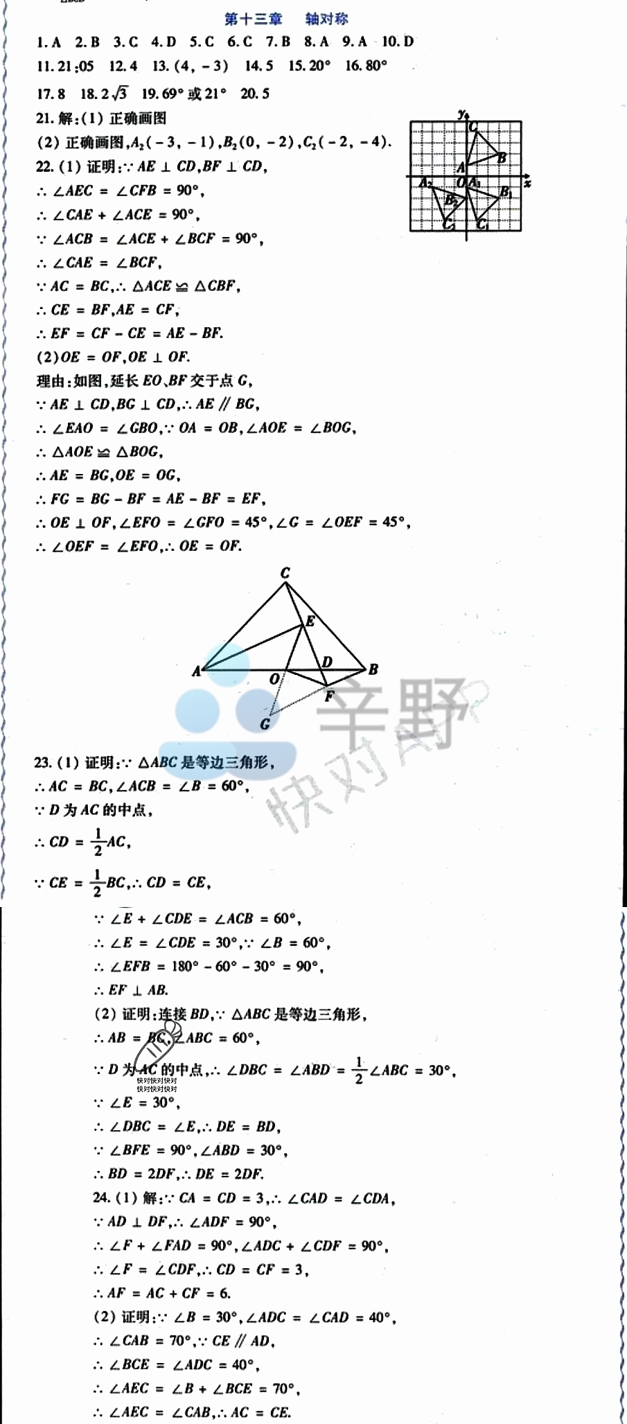 | 数学 | 一轮总复习19-34页: 第九章 不等式与不等式组 第十章 数据的收集、整理与描述 第十一章 三角形 第十二章 全等三角形 第十三章 轴对称 |