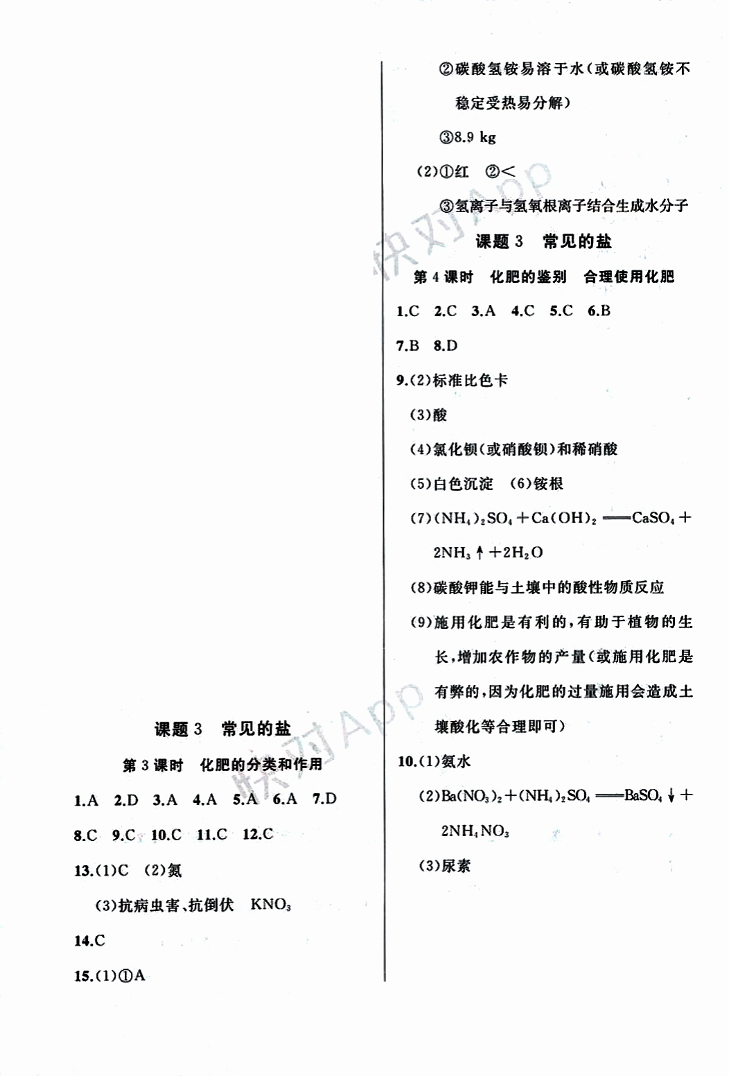 | 化学 | 试题优化71-74、77-78页: 第3课时 化肥的分类和作用、第4课时 化肥的鉴别 合理使用化肥 跨学科实践活动9 探究土壤酸碱性对植物生长的影响 |