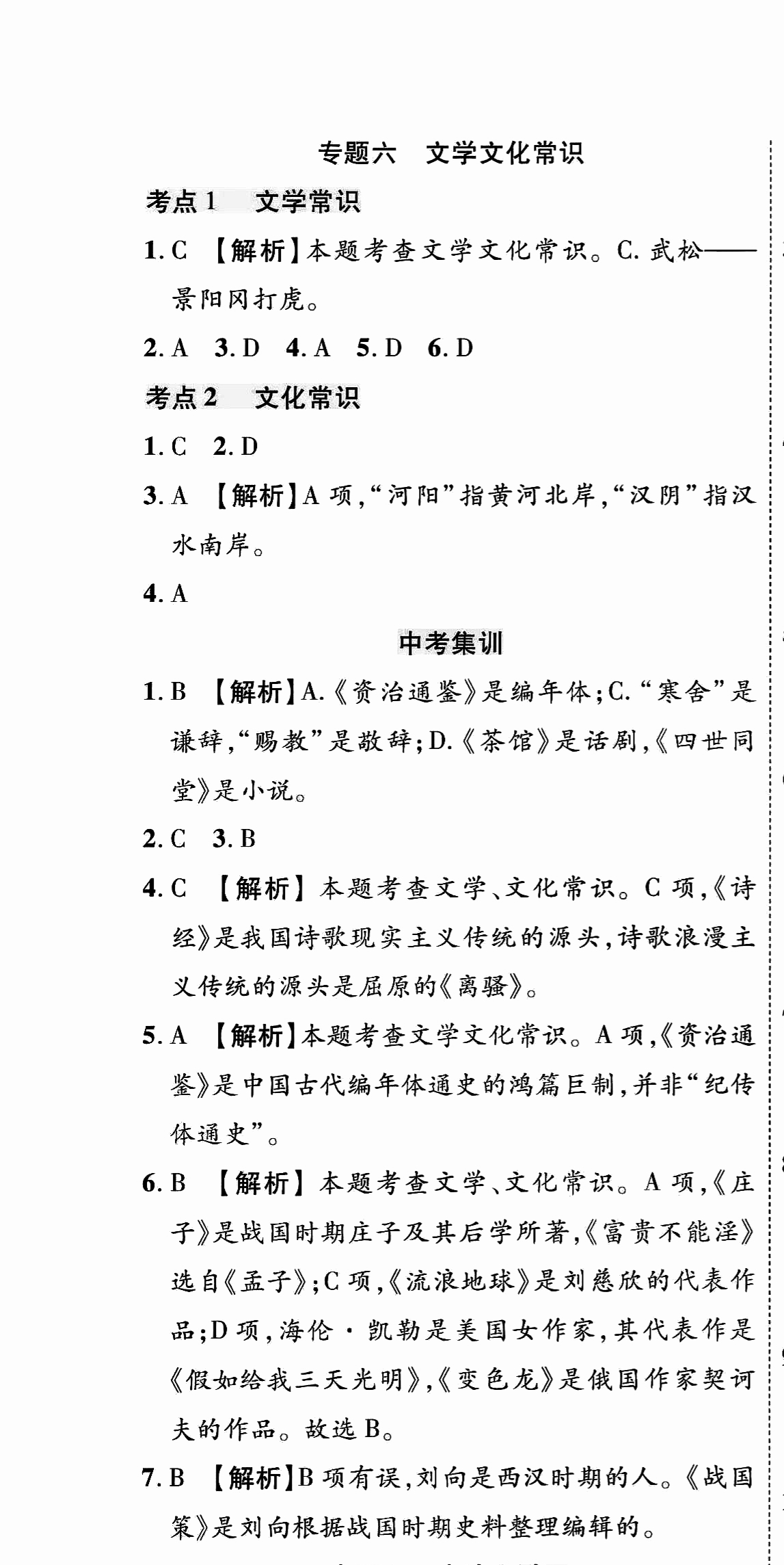 | 语文 | 中考全程复习测试卷19-21、45-46、87-89页: 专题六 文学文化常识 第9部《艾青诗选》、第10部《水浒传》 (十四)岳阳楼记 |