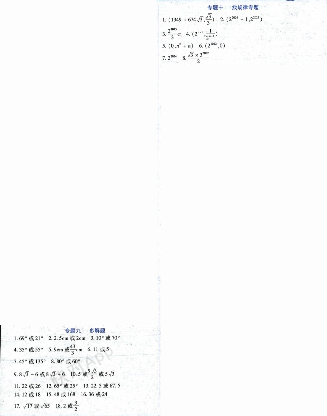 | 数学 | 第二部分 中考考点专题42-44页: 专题九 多解题、专题十 找规律专题 |