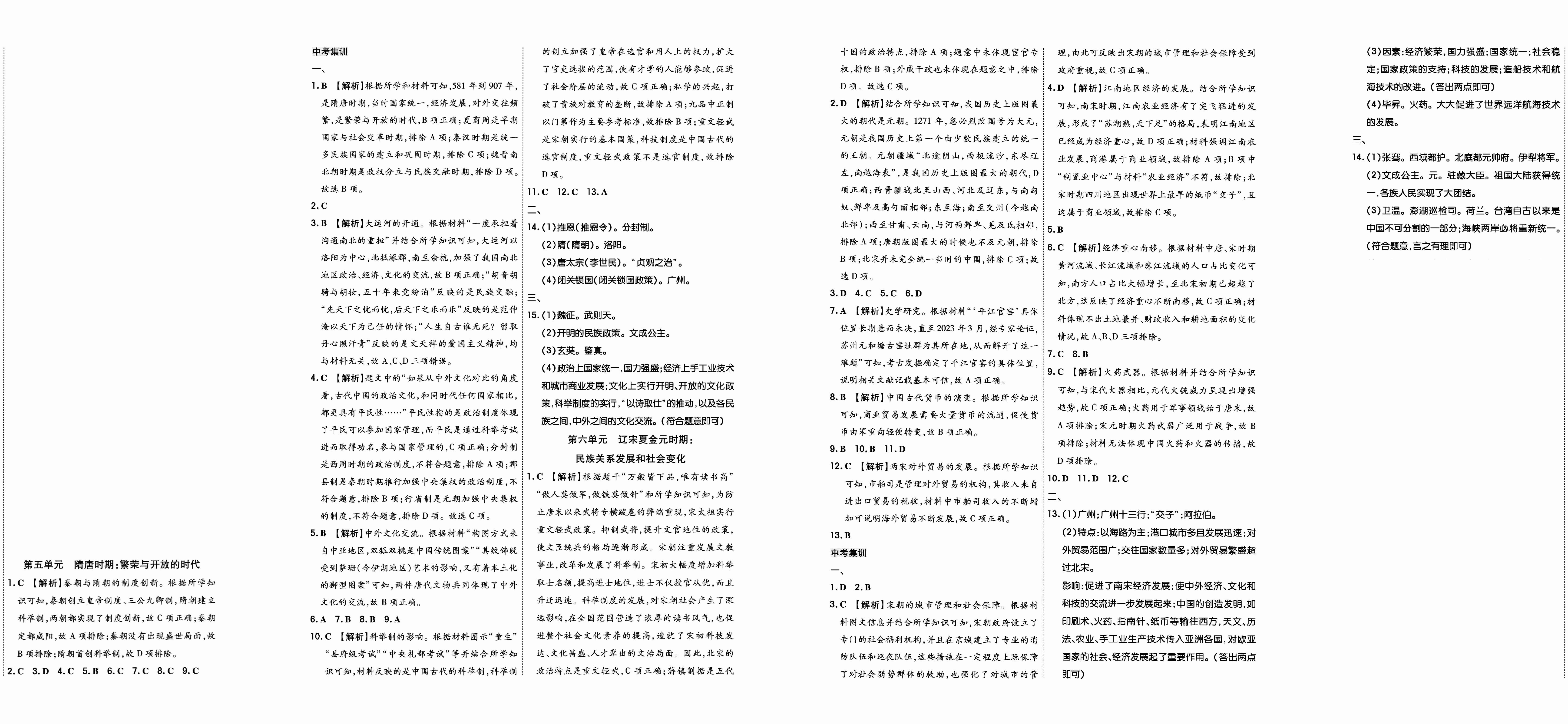 | 历史 | 中考全程复习测试卷16-27页: 第五单元 隋唐时期:繁荣与开放的时代、第六单元 辽宋夏金元时期:民族关系发展和社会变化 |