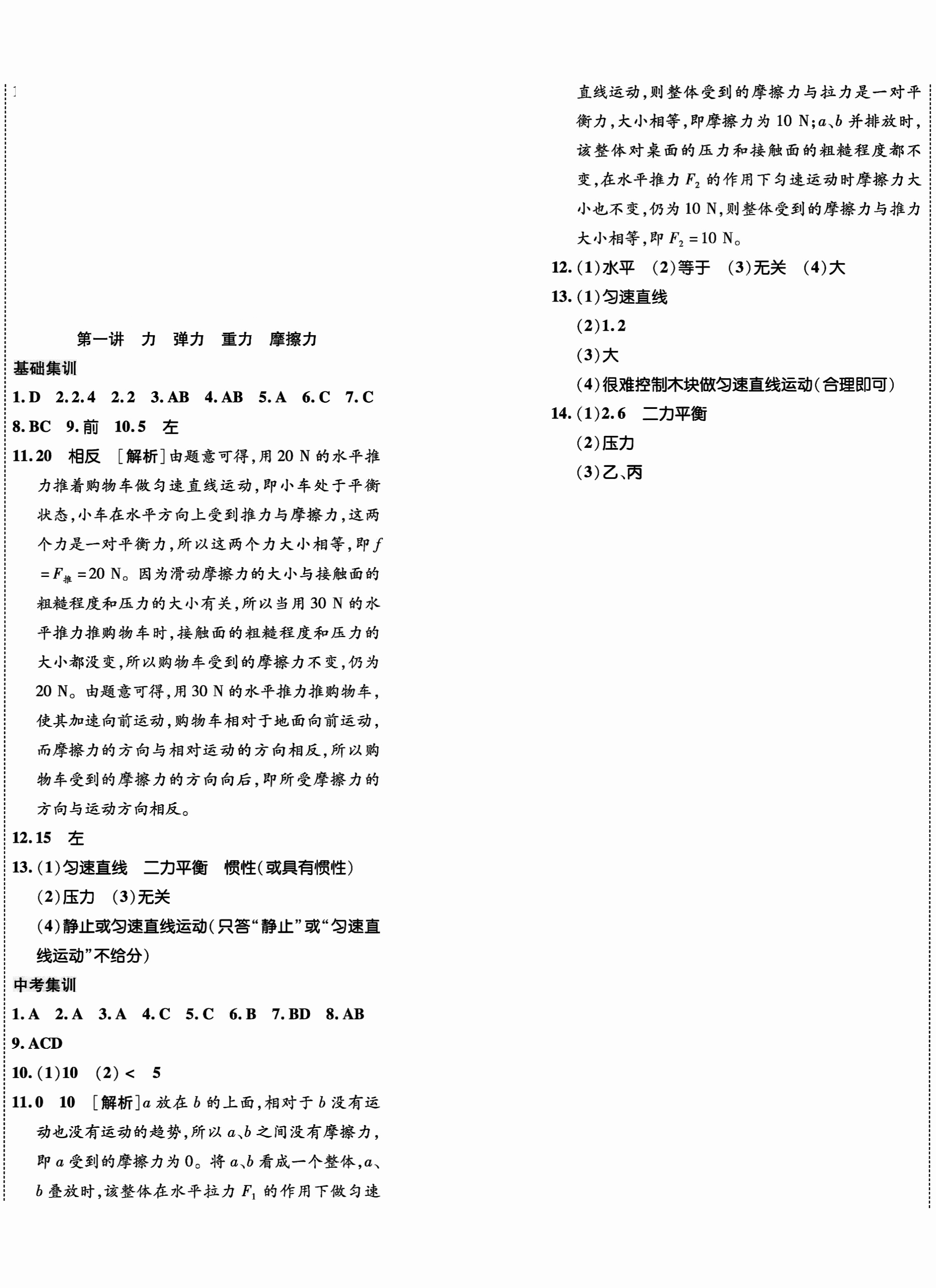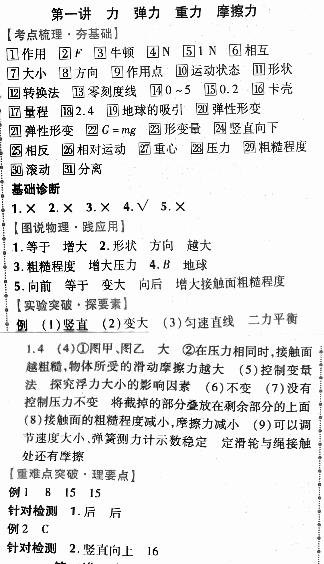 | 物理 | 中考全程复习测试卷43-48页: 第一讲 力 弹力 重力 摩擦力 课本梳理精讲29-33页: 第一讲 力 弹力 重力 摩擦力 |