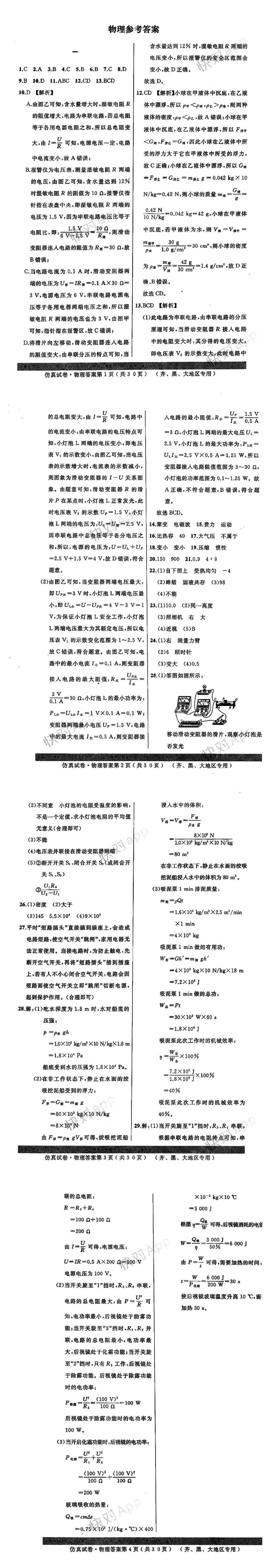 | 物理 | 仿真试卷: 物理试卷一 |