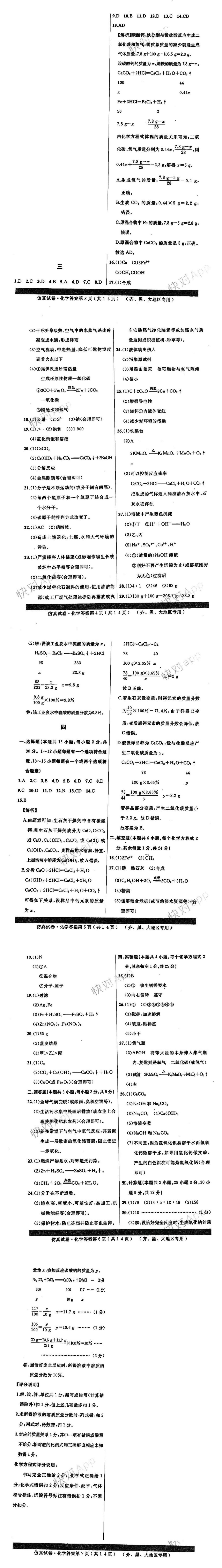 | 化学 | 仿真试卷: 化学试卷三、化学试卷四 |