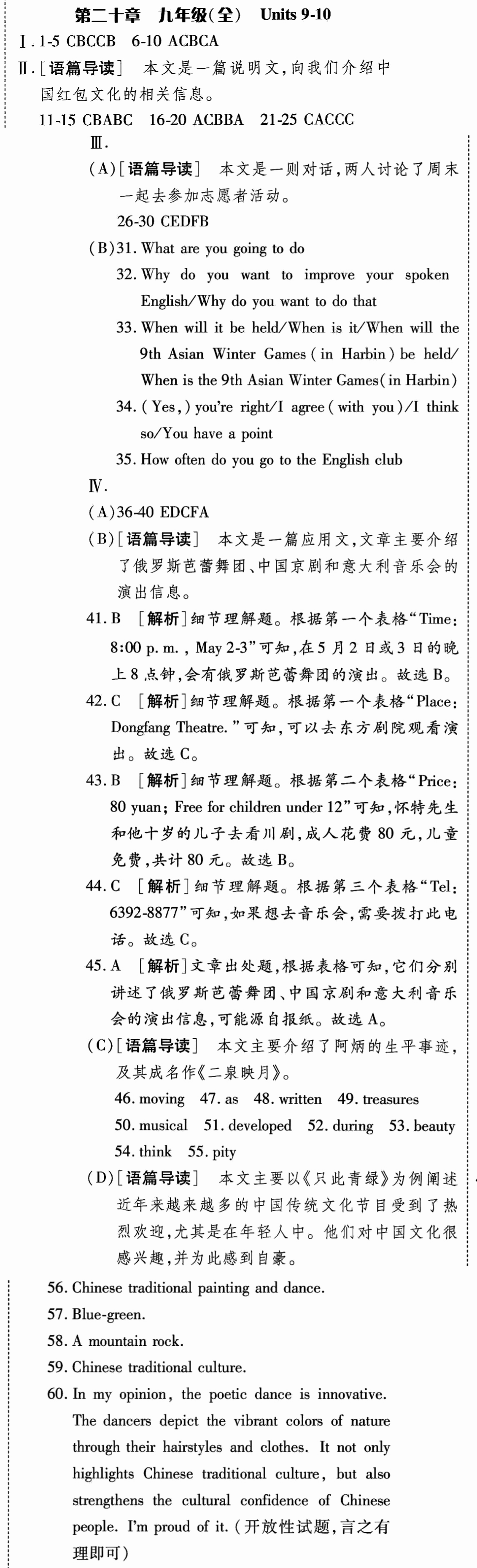 | 英语 | 中考全程复习测试卷115-120页: 第二十章 九年级(全) |