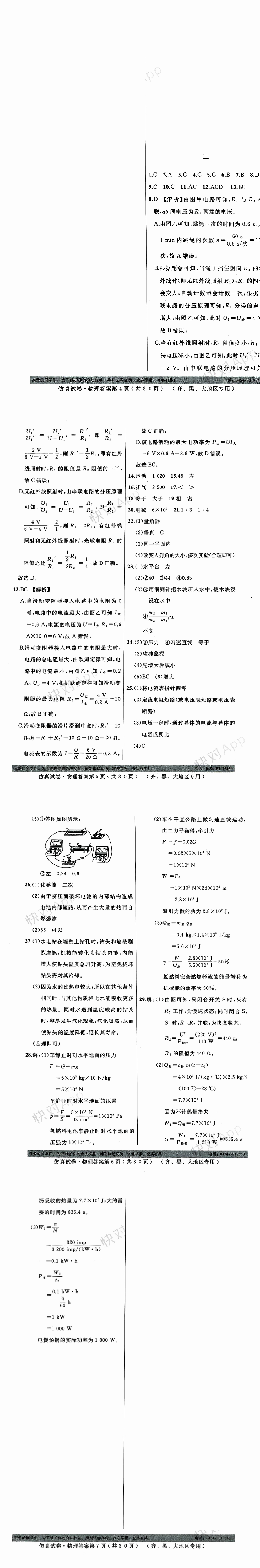 | 物理 | 仿真试卷: 物理试卷二 中考全程复习测试卷113-117页: 中考集训 |