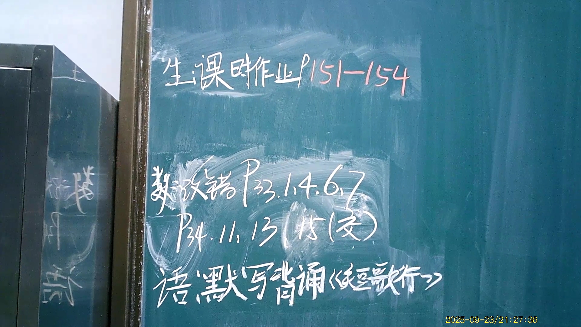 | 语文 | 教材58页: 短歌行写在作业本上 |