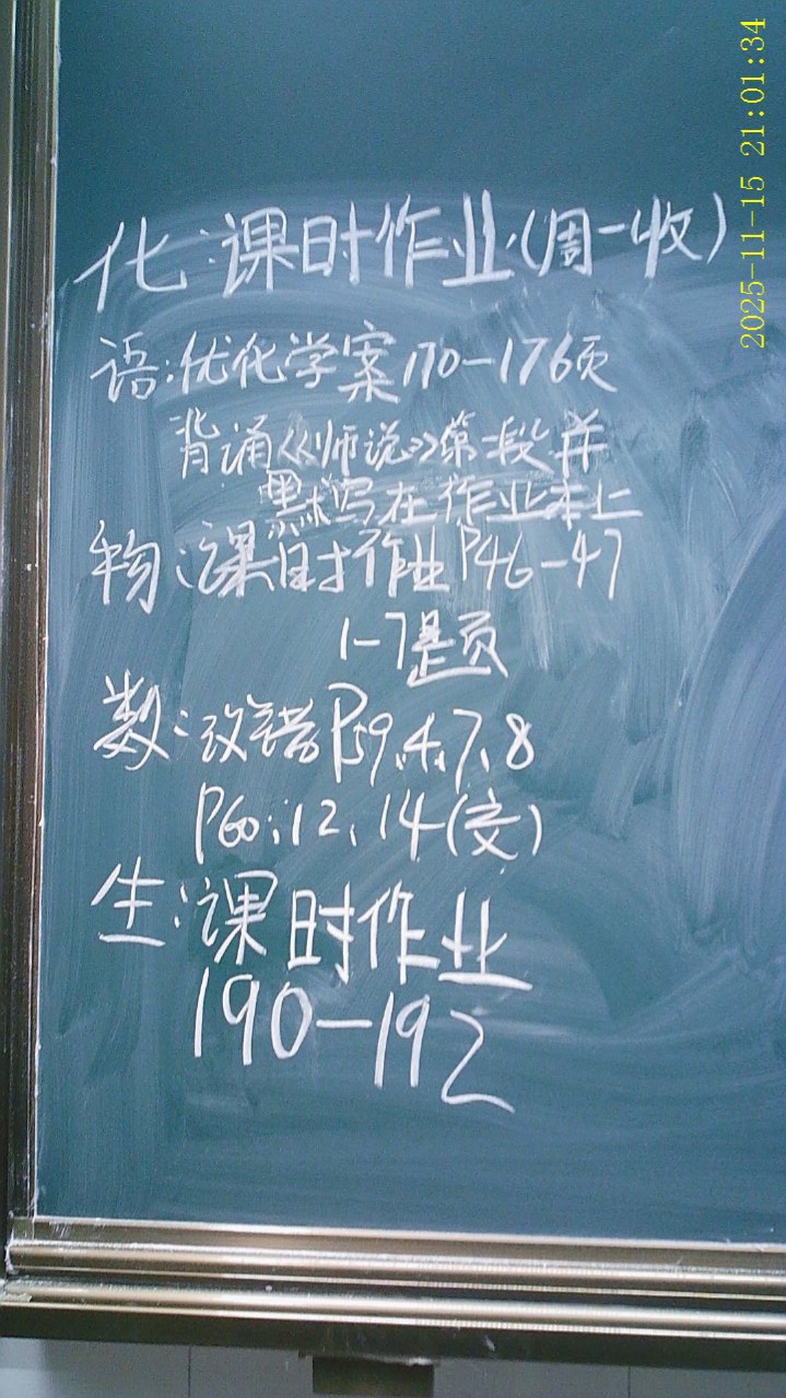 | 第三节晚自习 | 生物 | 语文 | 英语 | 地理 |