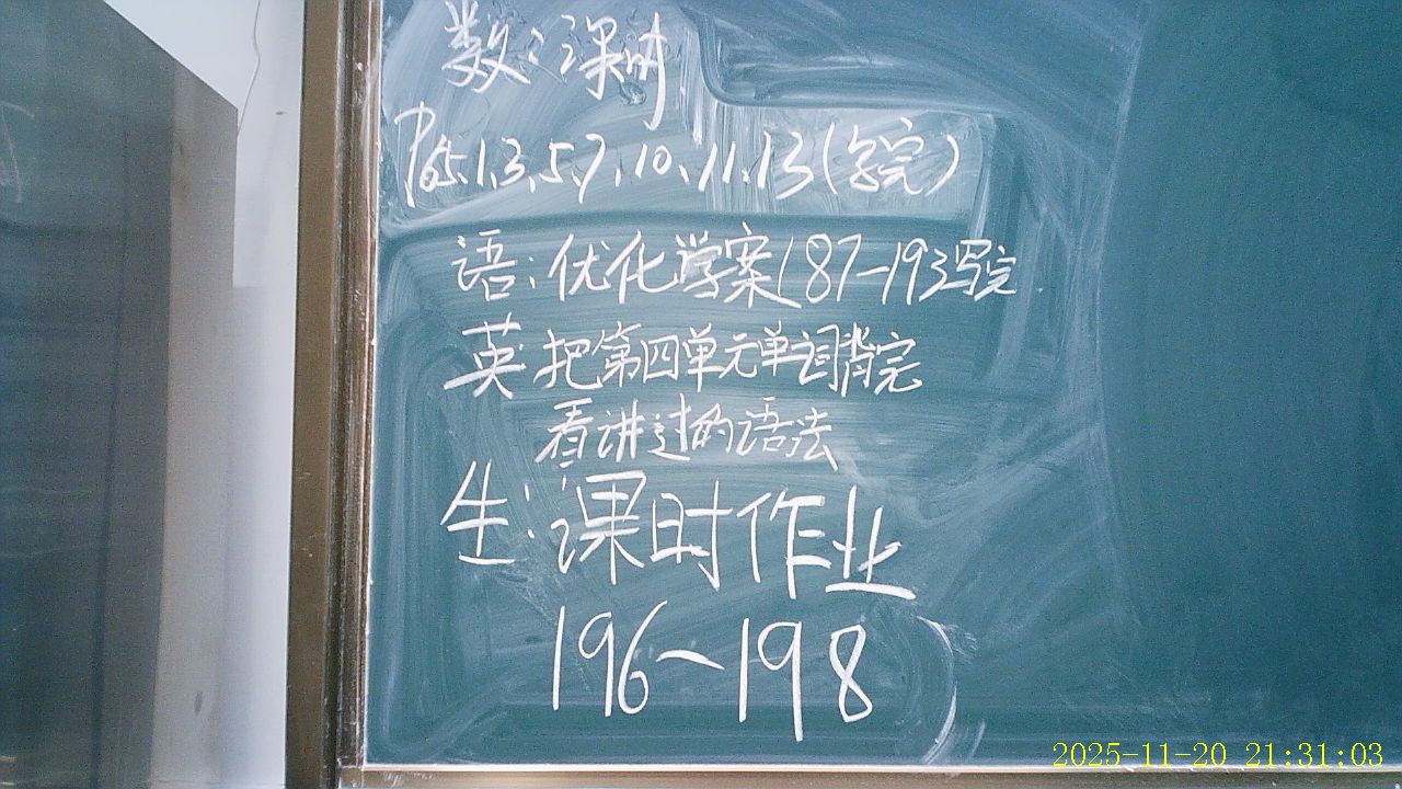 | 第二节晚自习 | 物理 | 数学 | 政治 | 数学 |