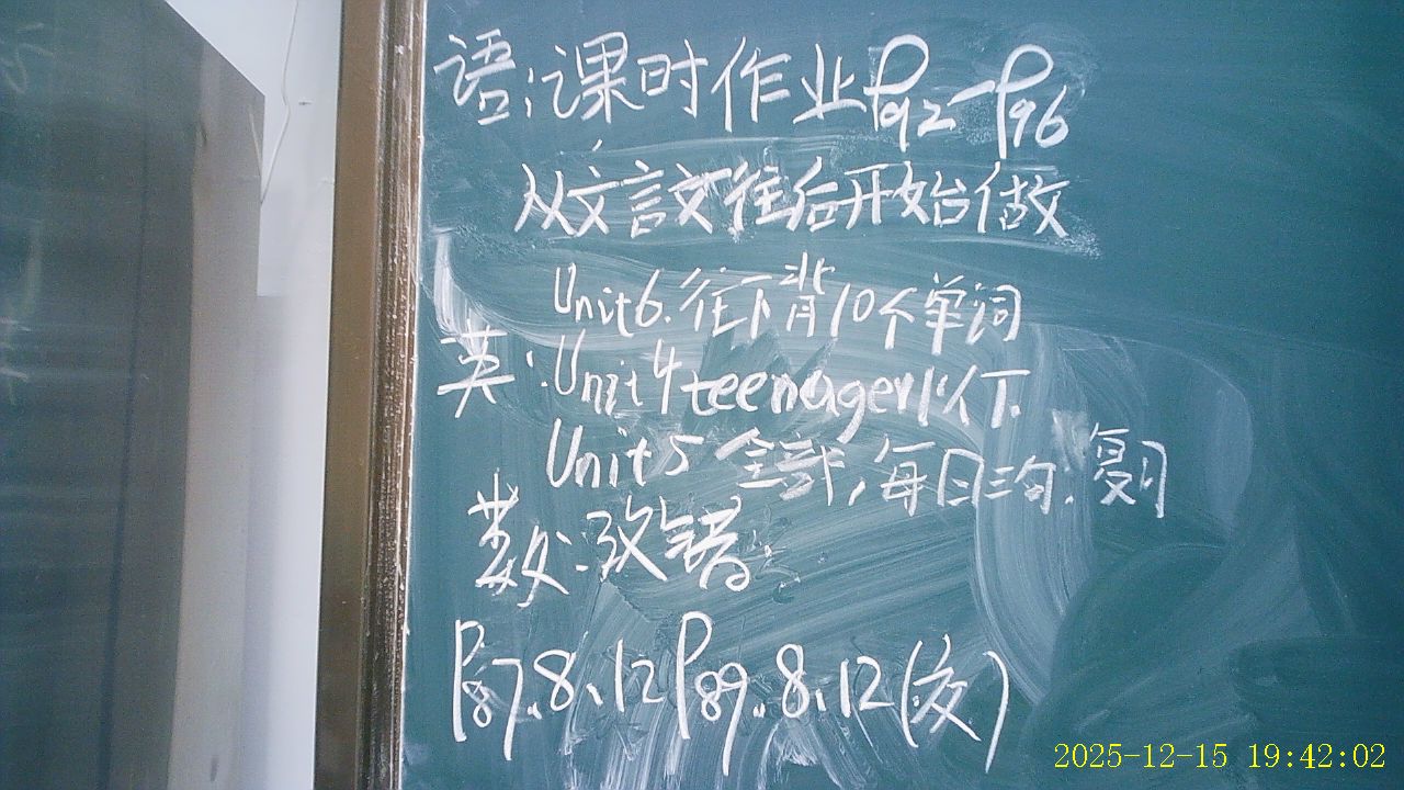 | 第四节晚自习 | 数学 | 地理 | 数学 | 英语 |