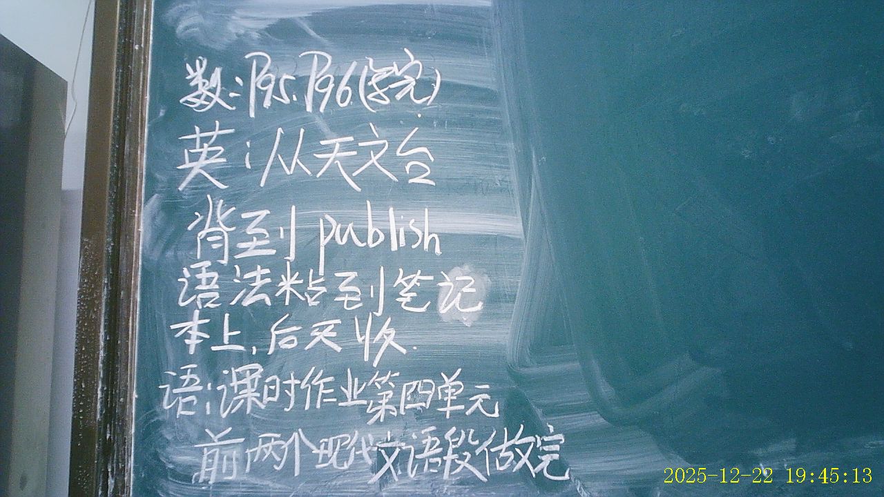 | 第四节晚自习 | 数学 | 地理 | 数学 | 英语 |