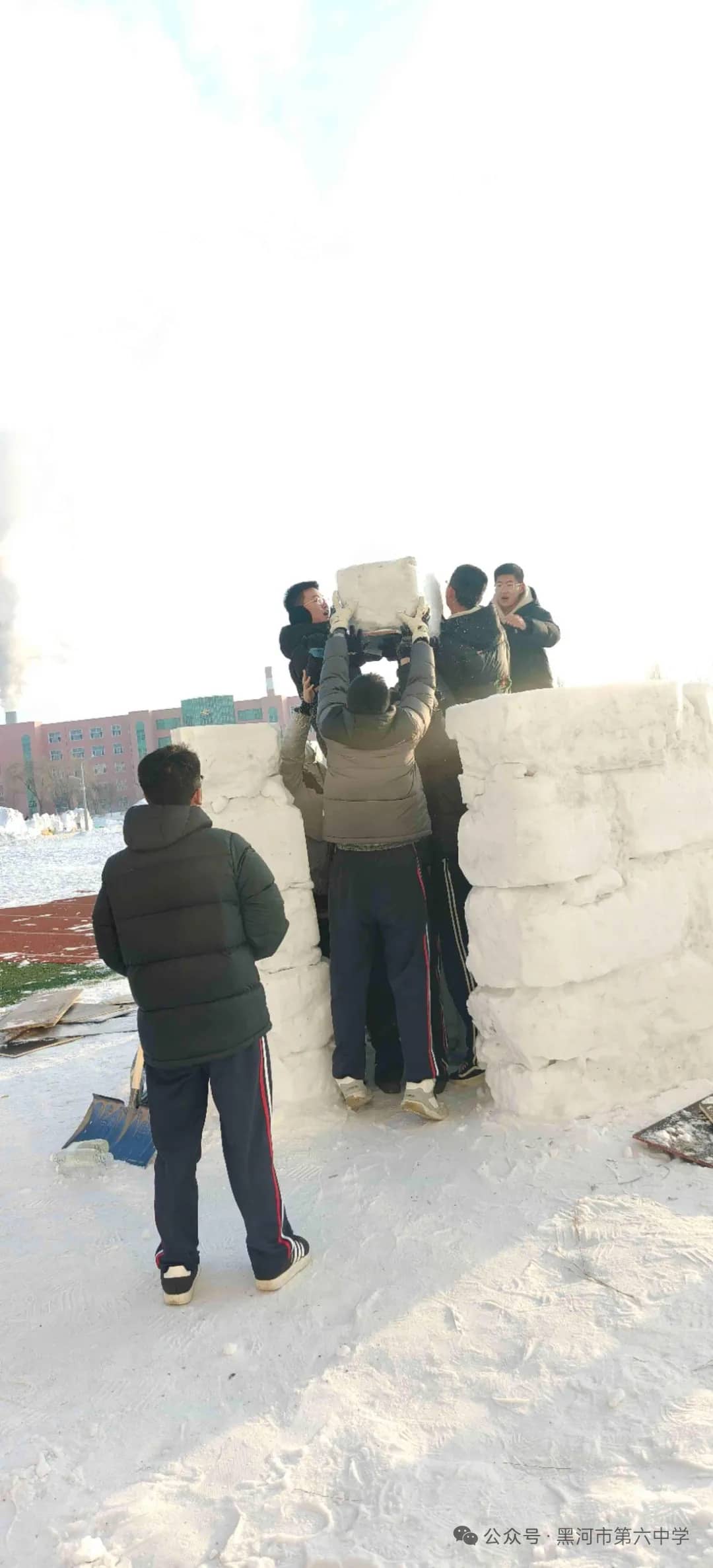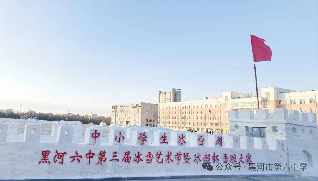 当北国的寒风送来冬日的请柬,当校园的操场披上洁白的盛装,中小学生校园冰雪周——黑河市第六中学第三届冰雪艺术节暨“冰超杯”雪雕大赛于12月初在全校师生的热切期盼中盛大开幕,本次大赛由黑河六中工会、黑河六中关工委、黑河六中政教科联合举办,历时一个月,最终取得圆满成功。本次大赛不仅是一场冰雪艺术的视觉盛宴,更是对劳动精神、创新意识和团队协作能力的生动磨炼,充分展现了六中学子积极向上、热爱生活的精神风采。
