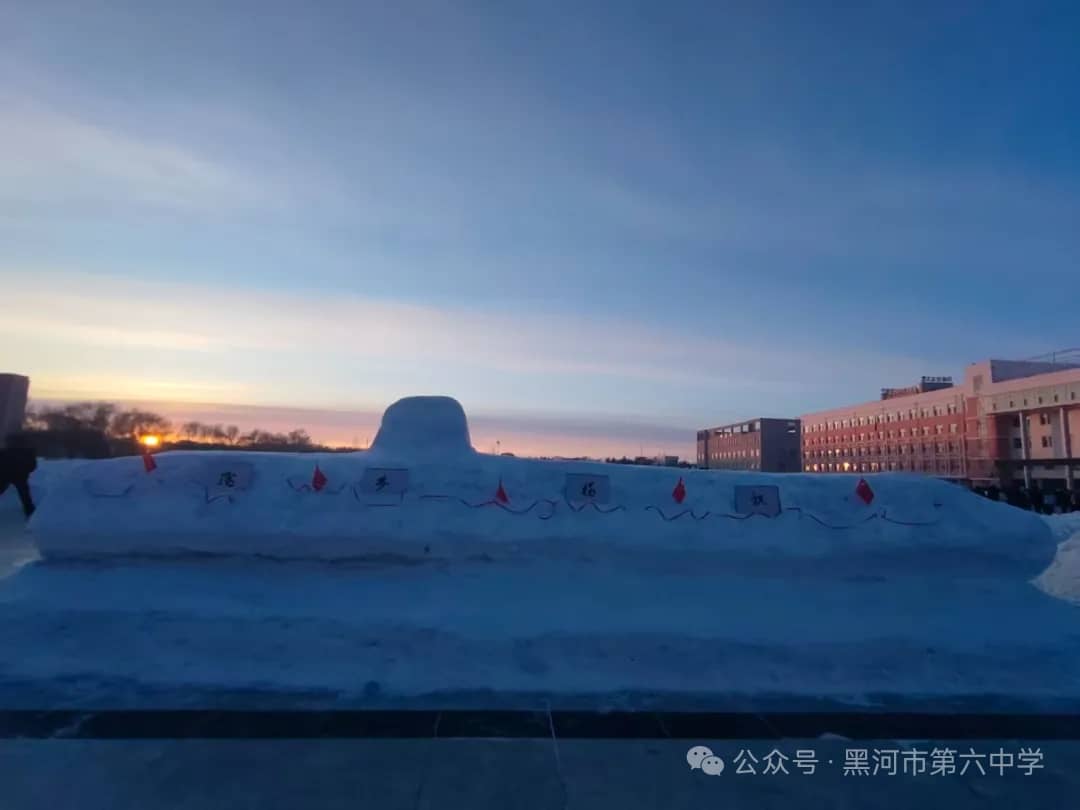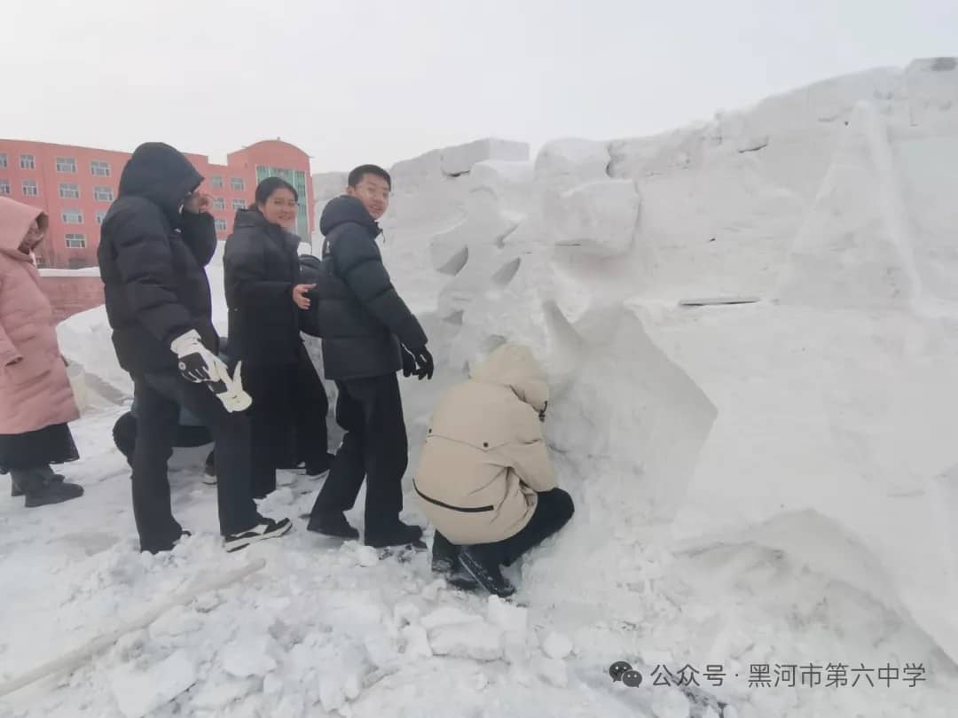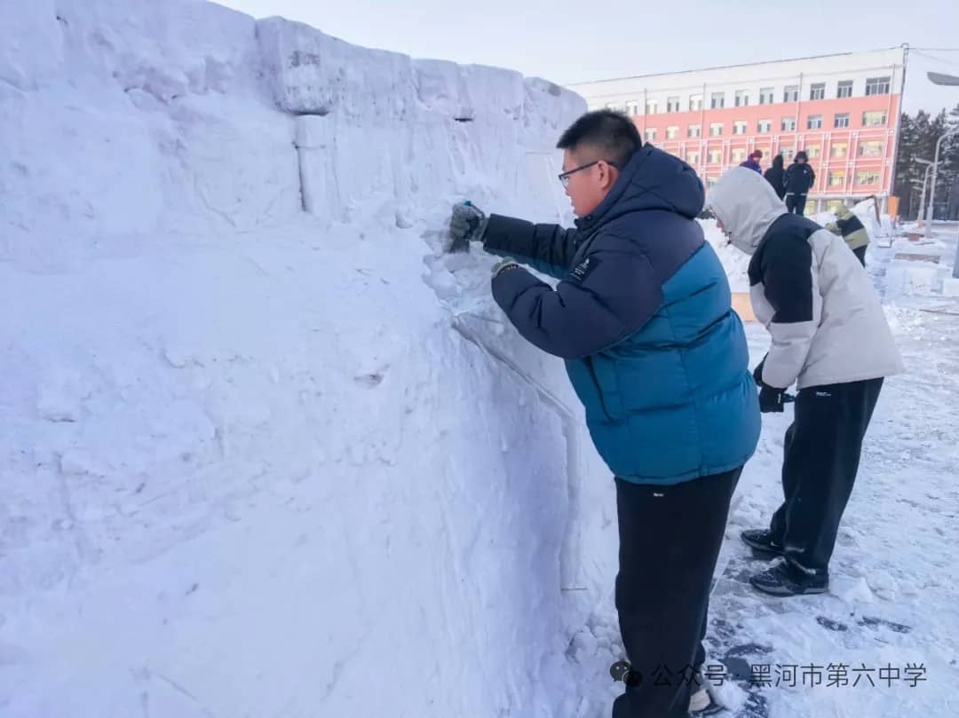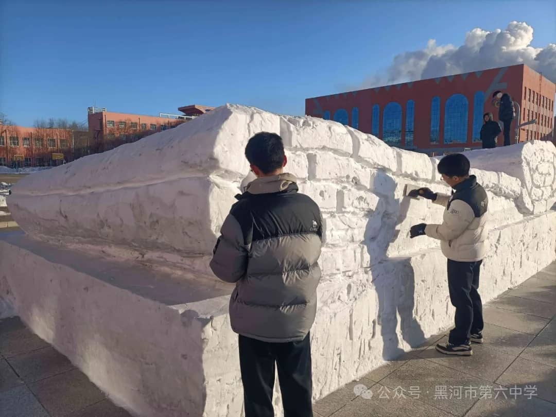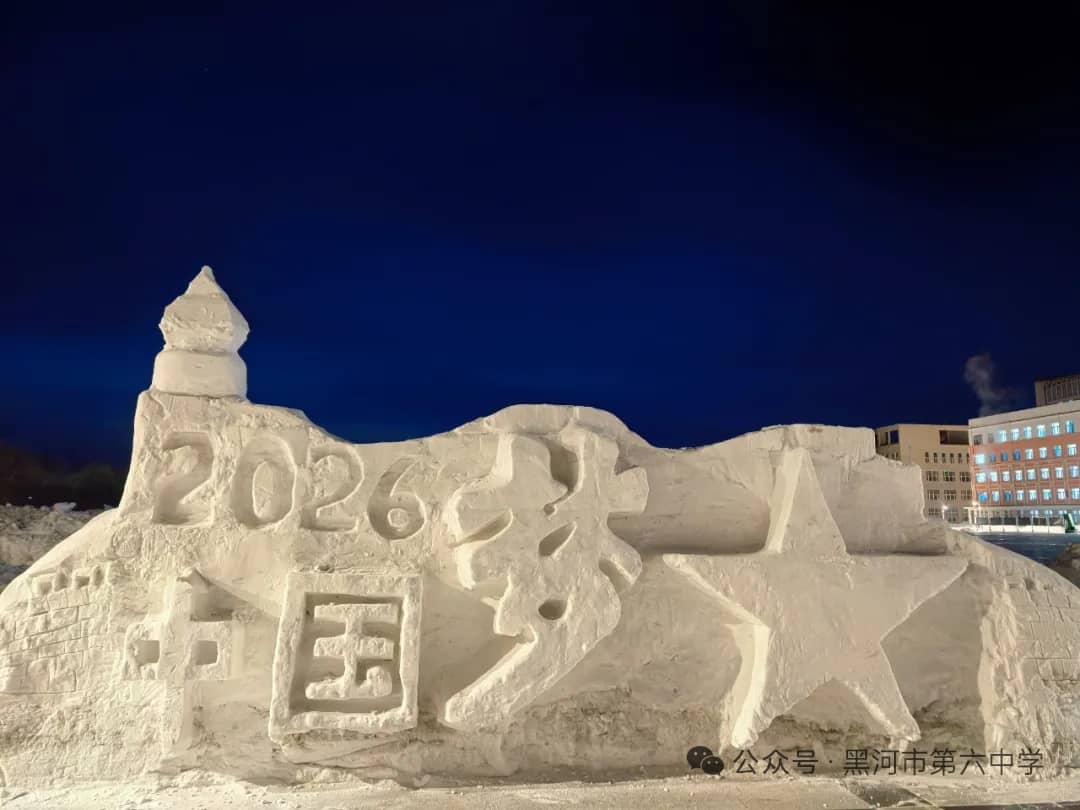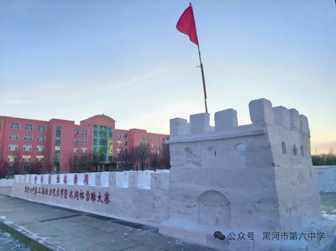黑河市第六中学始终秉持“五育并举”的育人方针,本届冰雪艺术节暨“冰超杯”雪雕大赛,正是学校积极探索实践劳动教育、美育和体育融合的生动体现。通过亲身参与冰雪艺术创作,同学们不仅锻炼了动手能力、团队协作能力,培养了创新思维,更在寒冷冬日里磨砺了意志品质,增强了责任意识、集体荣誉感与凝聚力。雪雕作品中蕴含的创意与巧思,更充分展现出六中学子丰富的想象力和对艺术美的追求。