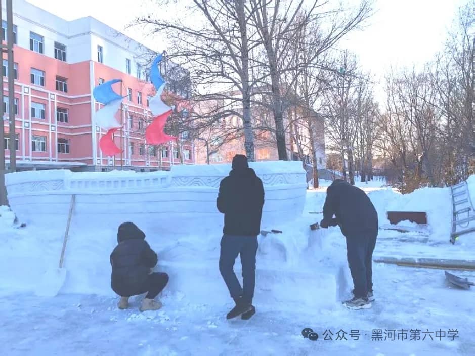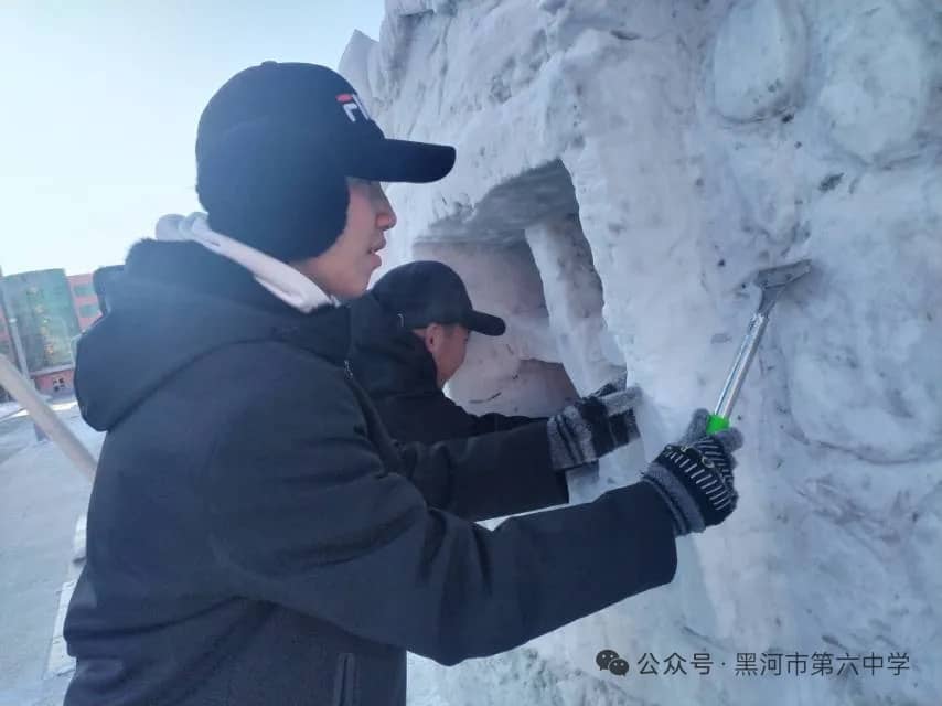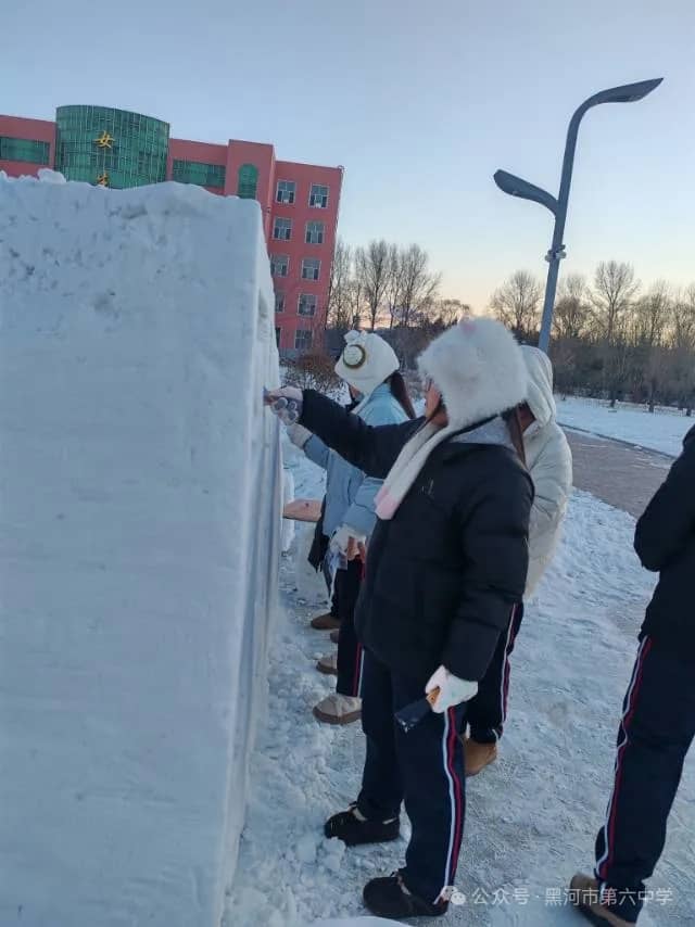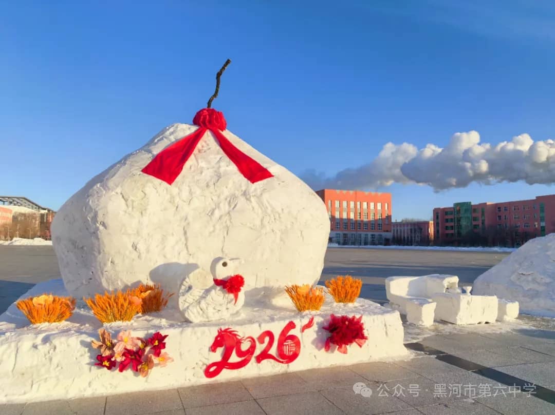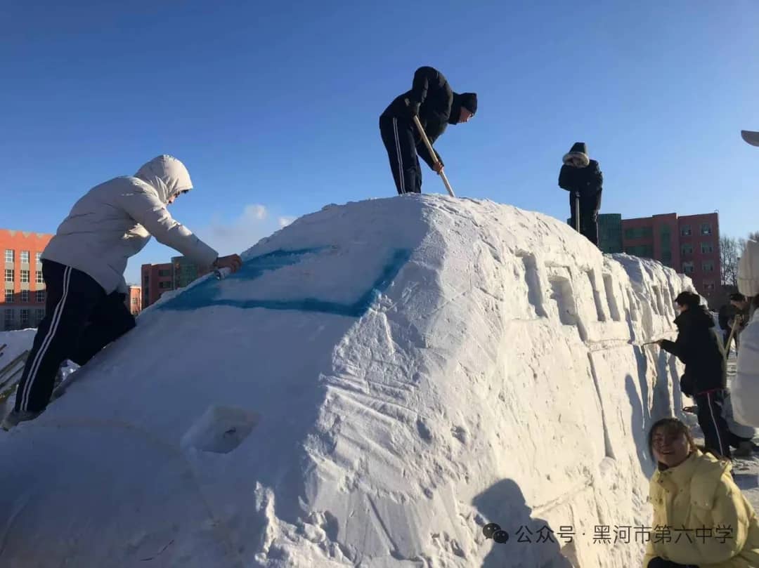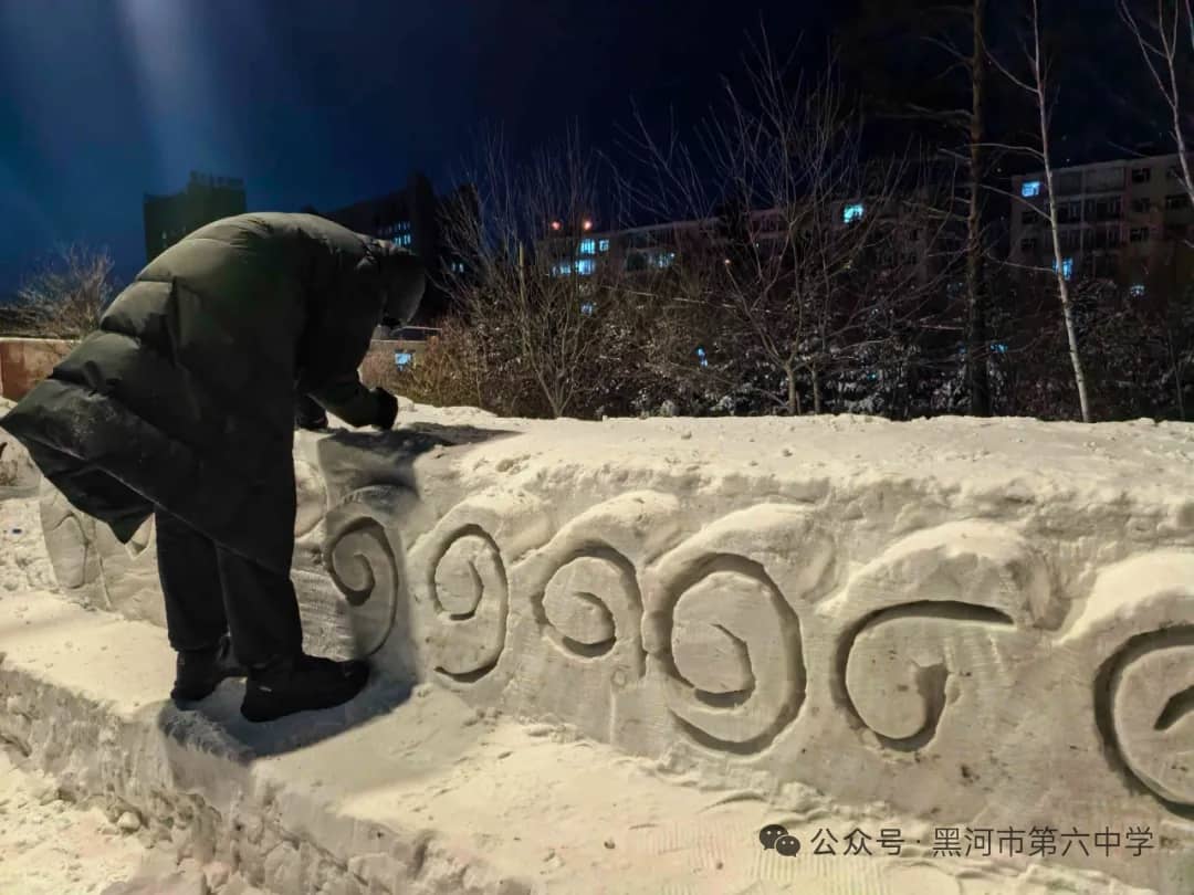 黑河市第六中学始终秉持“五育并举”的育人方针,本届冰雪艺术节暨“冰超杯”雪雕大赛,正是学校积极探索实践劳动教育、美育和体育融合的生动体现。通过亲身参与冰雪艺术创作,同学们不仅锻炼了动手能力、团队协作能力,培养了创新思维,更在寒冷冬日里磨砺了意志品质,增强了责任意识、集体荣誉感与凝聚力。雪雕作品中蕴含的创意与巧思,更充分展现出六中学子丰富的想象力和对艺术美的追求。