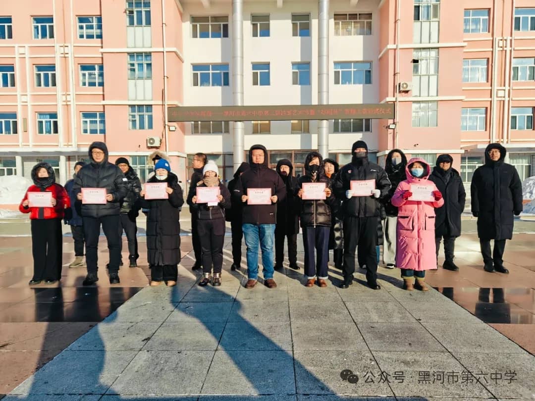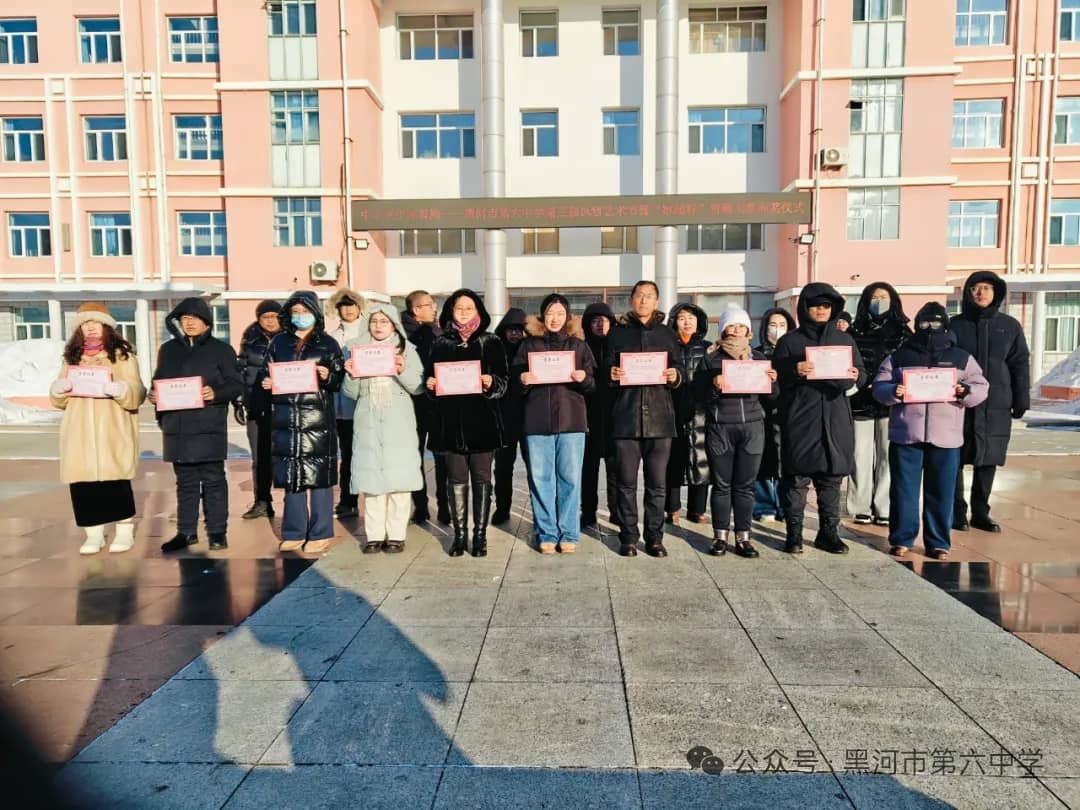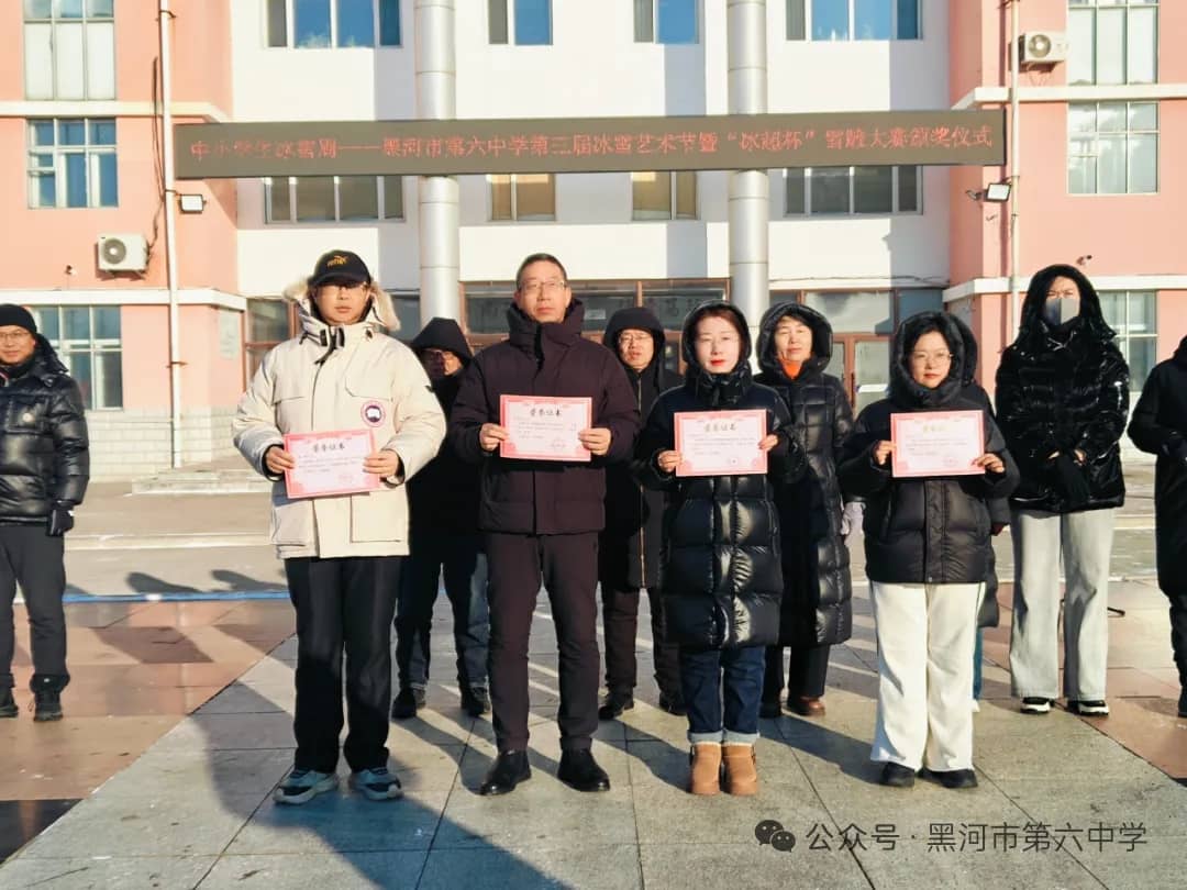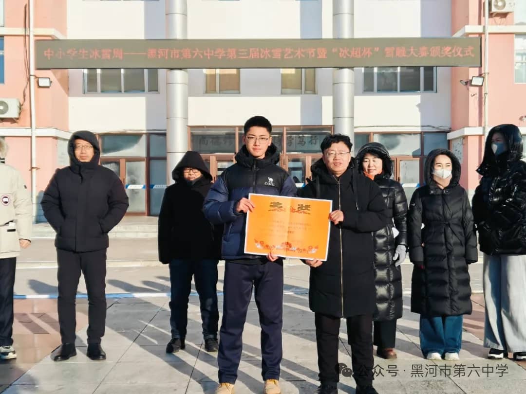 1月10日,黑河市第六中学隆重举行本次雪雕大赛的颁奖仪式。吕臣校长在颁奖仪式上致辞,他深情说到,本次大赛兼具“谋划启动早、师生参与热情高、作品质量好”三大鲜明特点,并结合获奖的雪雕作品展进行了点评。他强调,雪雕大赛的圆满落幕,不仅是一次校园文化的盛会,更是一次精神力量的凝聚;这一方方冰雪雕琢的天地,足以印证:六中人既能以匠心雕琢冰雪之美,更能以实干书写未来的无限美好。